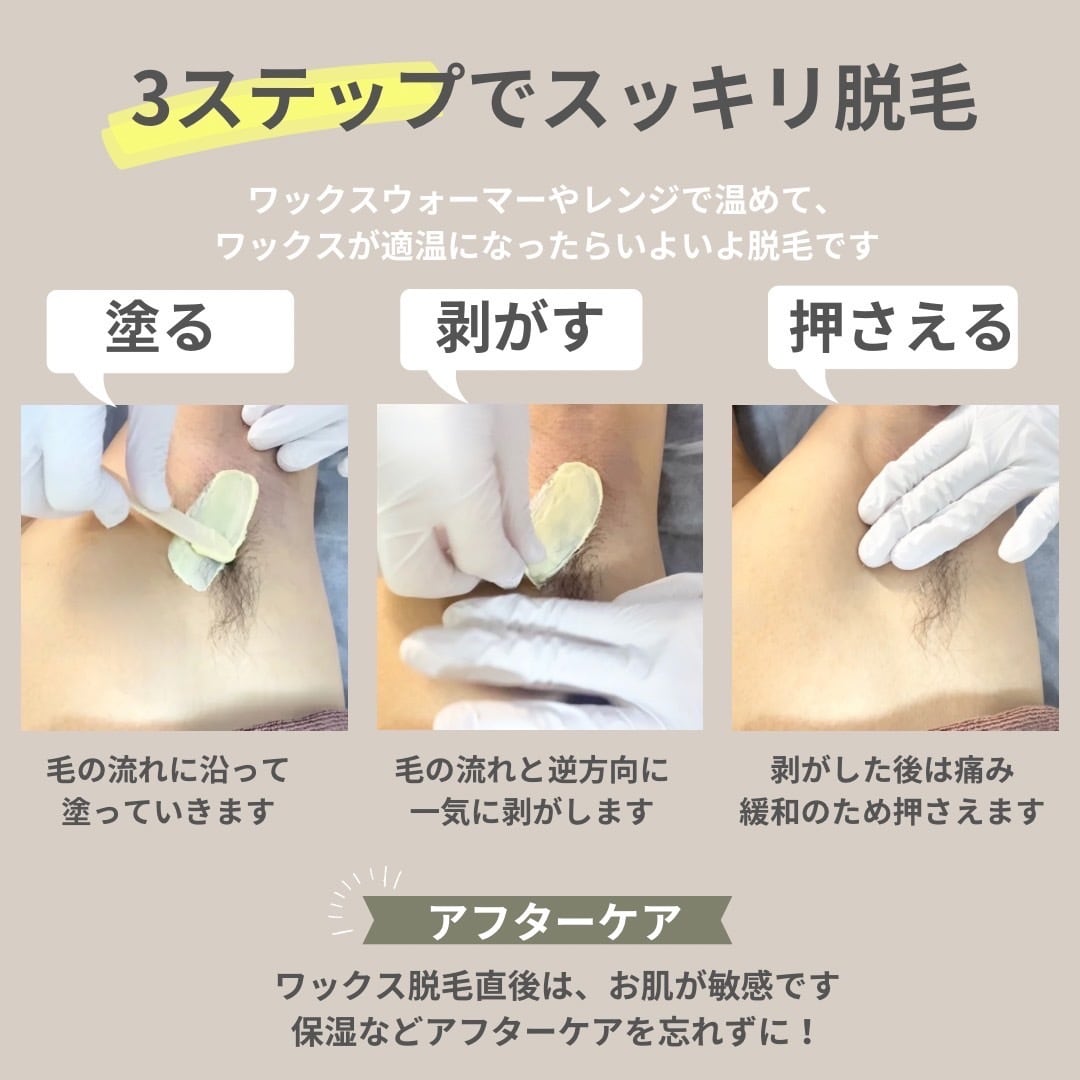 ・温めたワックスは高温になります、使用前には少量を腕の内側などに塗り、温度を確かめてからご使用ください。